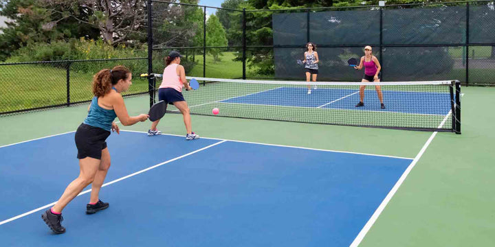 Le pickleball se pratique principalement en double sur un court plus petit que celui du tennis. Les règles simples encouragent un jeu rapide et accessible pour tous les âges et niveaux.
